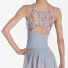 Light and whimsical, this fairytale camisole dress features three very different fabrics, Soft floral micromesh, four-way stretch mesh and our luxurious microfiber. Features floral detail on the top of the dress, beautiful open mid-back and floral detail on upper-back. Fully front lining.