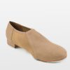 Taylor Adult Tap Shoe pre arched, split sole, slip on tap shoe with Stretch Neoprene under the arch. Hard toe box. Screwed on taps and rubber pads attached. Materials: Leather/Neoprene PS: Sizes listed are US sizes